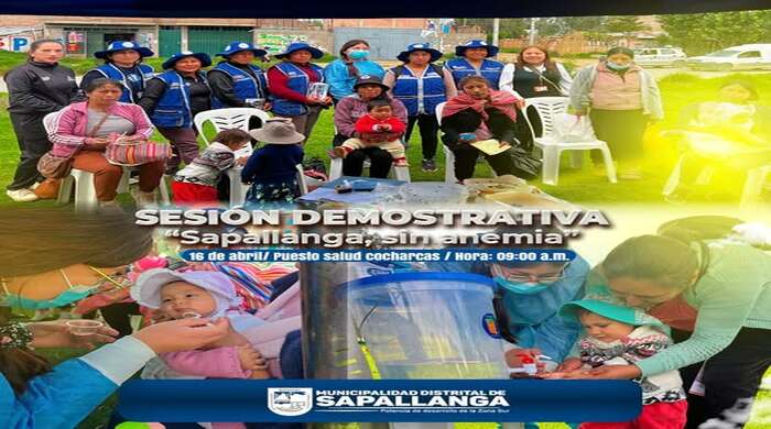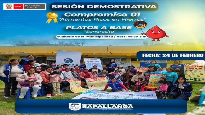 SESIÓN DEMOSTRATIVA COMPROMISO 01 - LIBRE DE ANEMIA ¡No te pierdas nuestra sesión demostrativa en distrito de Sapallanga! 24 de febrero 2026 Hora: 09:00 a.m. Lugar: Auditorio de la Municipalidad