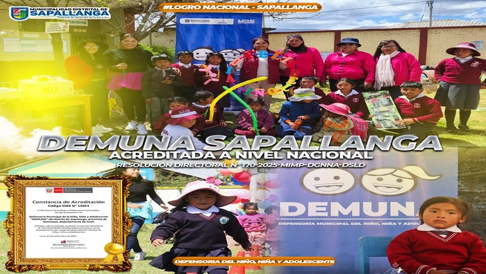¡Con mucho orgullo! La División de DEMUNA de la Municipalidad Distrital de Sapallanga ha sido acreditada, después de 7 años.