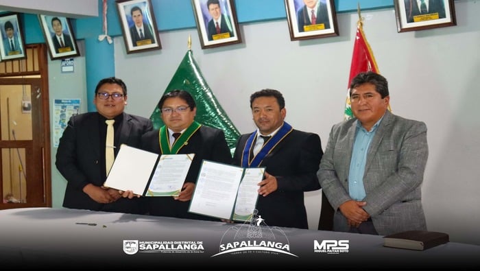 En un evento formal, el alcalde del distrito de Sapallanga, Miguel Paitán Soto, junto al presidente del directorio, Miguel Chamorro