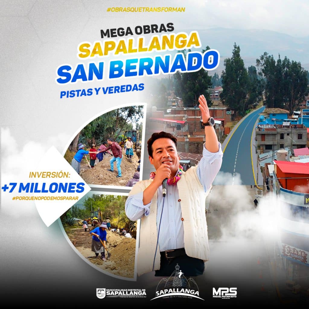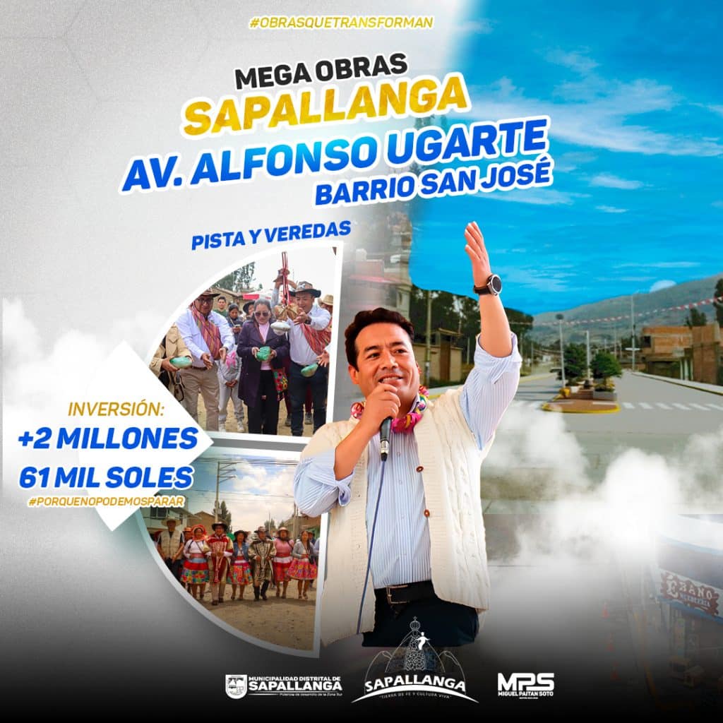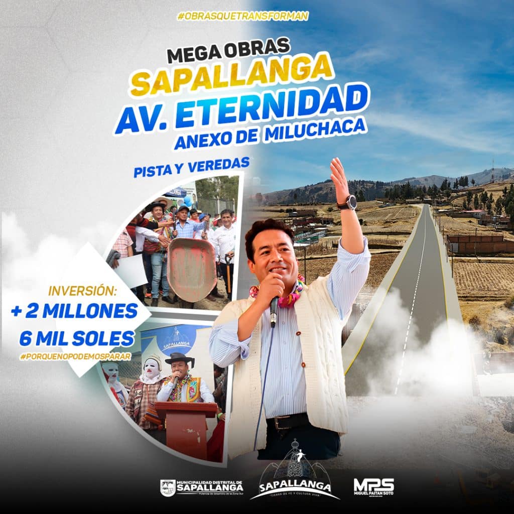 MEGA OBRAS EN SAPALLANGA Seguimos avanzando con las obras, Pistas y veredas Av. eternidad Miluchaca, con una inversión más de