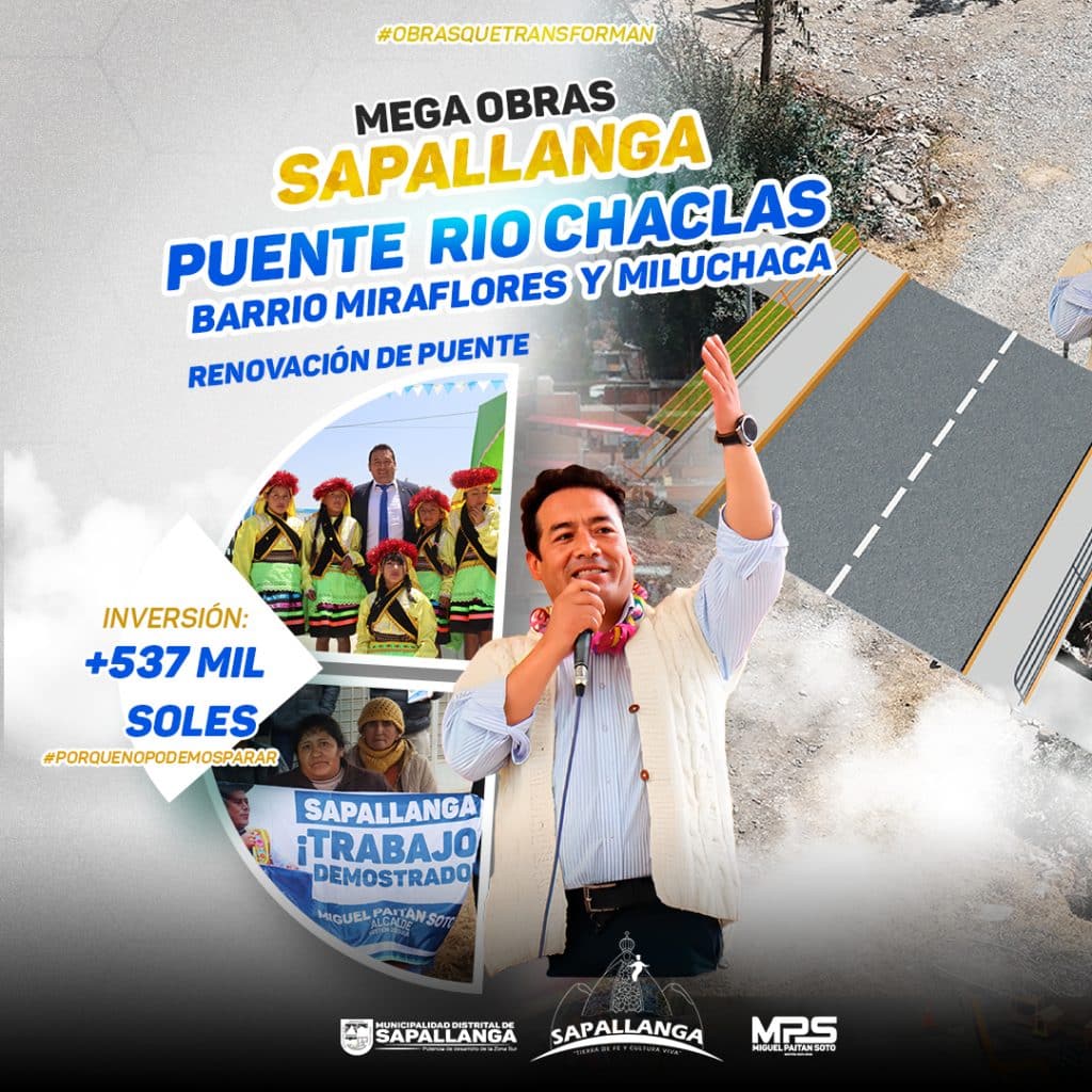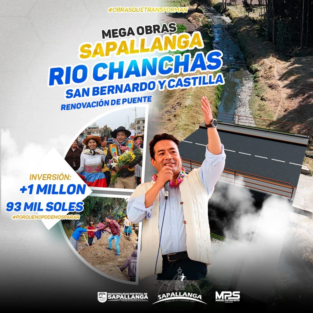 MEGA OBRAS EN SAPALLANGA Seguimos avanzando con las obras, renovación de puente Rio Chaclas Barrio Miralfores y Miluchaca, con una