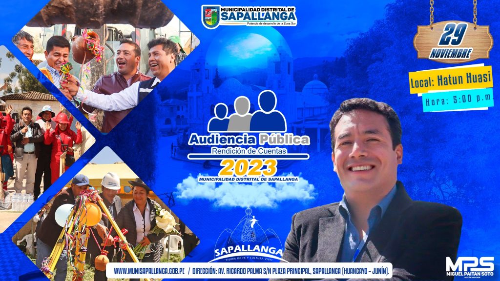 «II AUDIENCIA PÚBLICA 2023» La Municipalidad Distrital de Sapallanga invita a toda la población a la II Audiencia Pública y