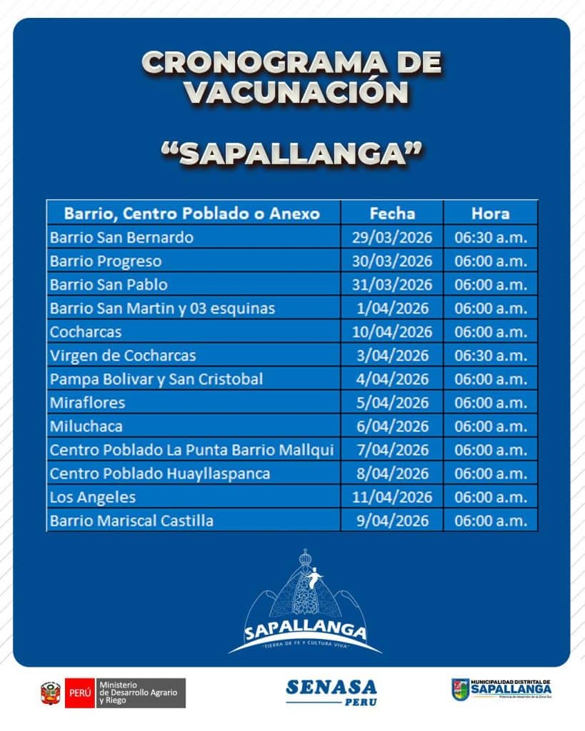 SENASA, en colaboración con la Municipalidad Distrital de Sapallanga, te invita a participar en las Jornadas Sanitarias 2026. Estaremos realizando
