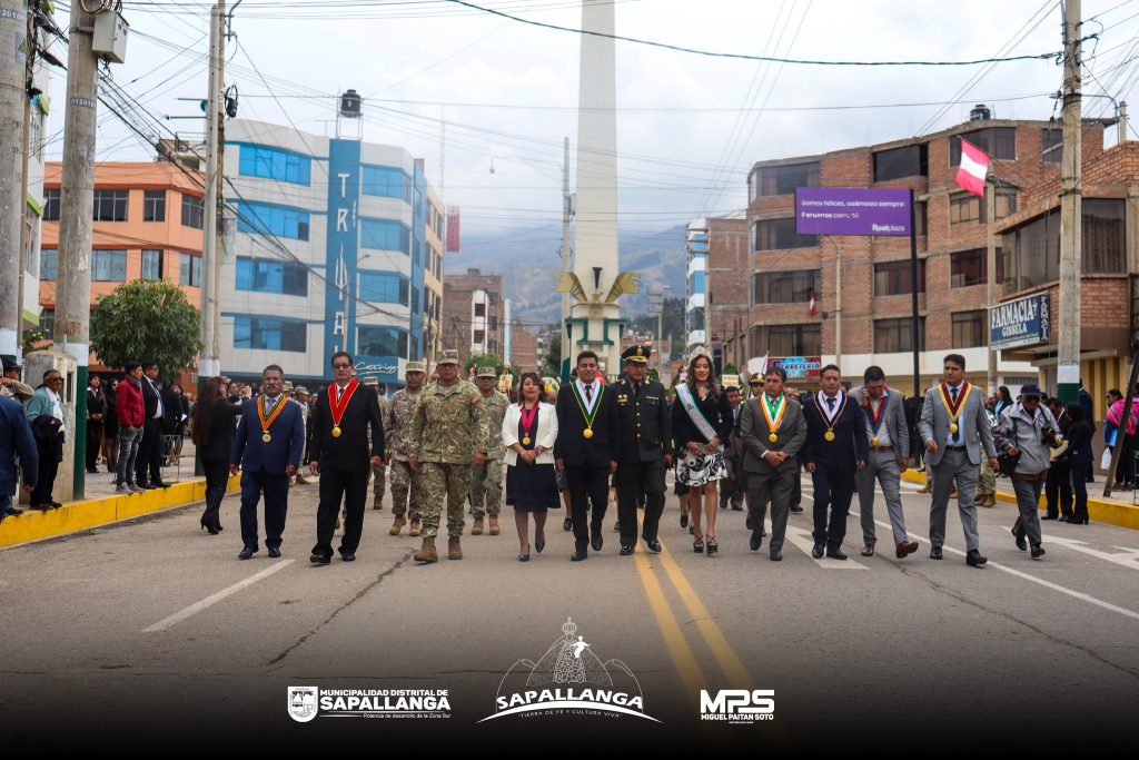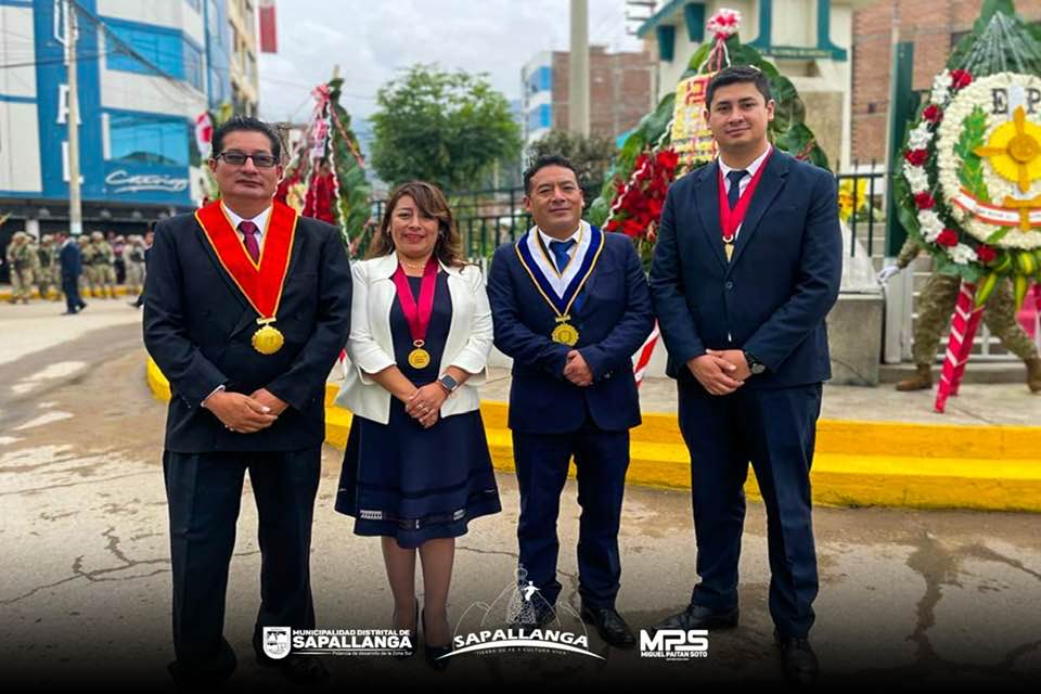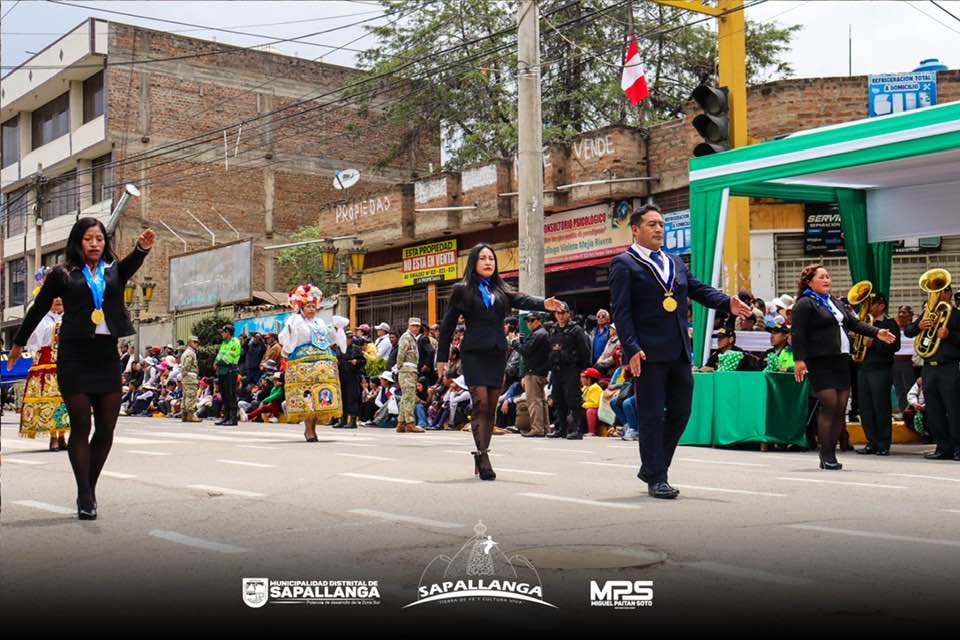 El alcalde de la Municipalidad distrital de Sapallanga y su plana de colaboradores participaron en el desfile por los 203 Años de la Jura y Proclama de la Independencia del Perú en Huancayo.