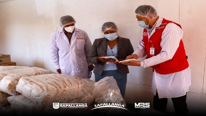 La Municipalidad Distrital de Sapallanga ha recibido una tonelada y media de productos de primera necesidad, gracias al programa Qaliwarma. Estos alimentos como azúcar, leche, arroz, aceite, atún, entre otros, beneficiarán a más de 300 usuarios de nuestras ollas comunes como son Mamacha Cocharcas, Corazón de Jesús de Saputia y San Sebastián en la Punta.