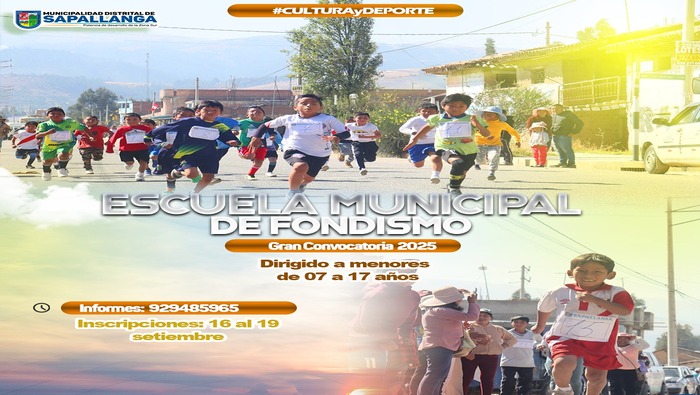 ¡La Municipalidad Distrital de Sapallanga te invita a formar parte de la ESCUELA MUNICIPAL DE FONDISMO!